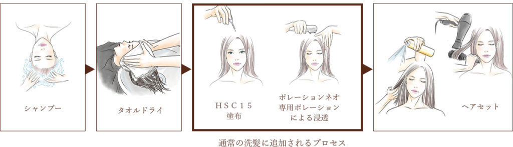 施術はシャンプー後に、塗布と浸透のみ