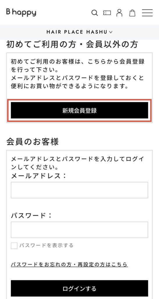 次に「新規会員登録はこちら」から会員登録をいたします。
