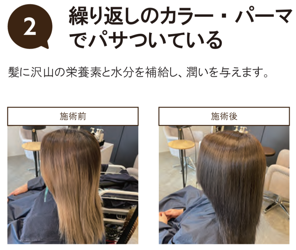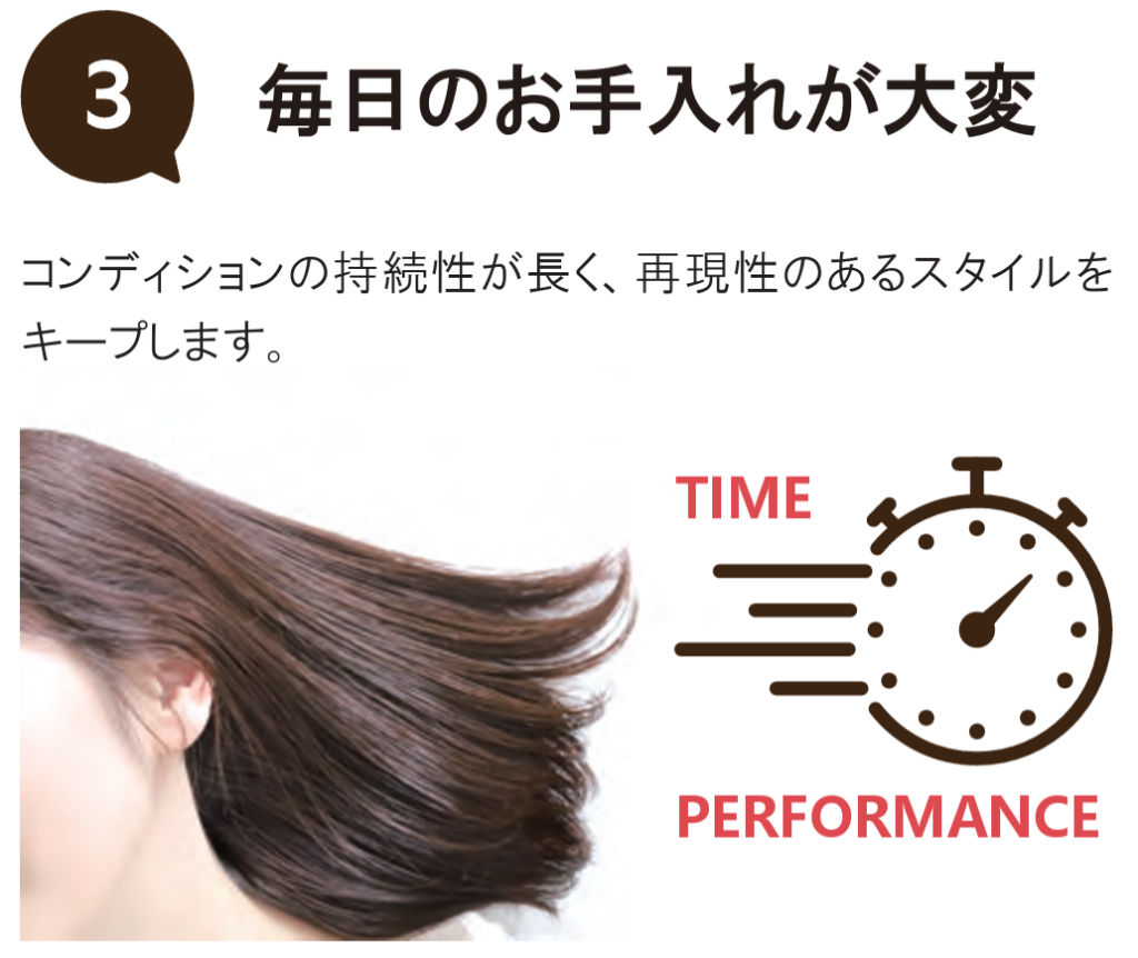 | ダメージ | 繰り返しで乾燥・パサつき | ダメージを最小限に |