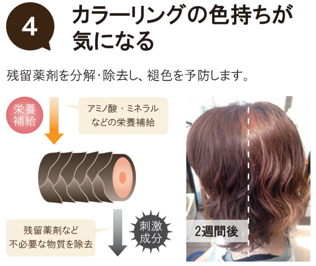 通常カラーに、頭皮ケアの成分をプラスしたものです。
